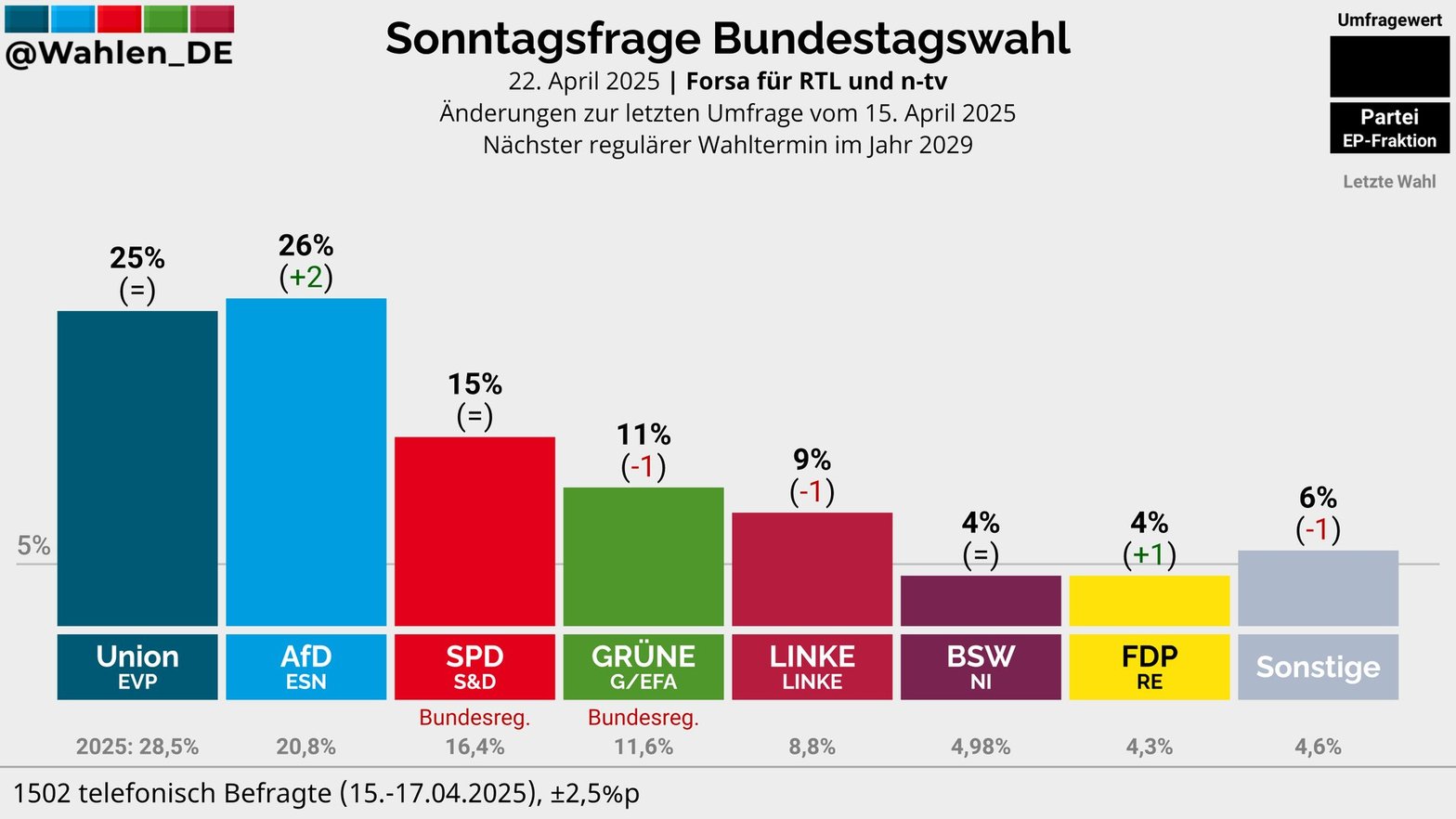 Il est temps que ce gouvernement se mette en place. Car sa base électorale fond au soleil. Celle des chrétiens-démocrates d’abord. Leur score médiocre il y a deux mois (28,5%) s’effrite dans les sondages. Et l’extrême-droite qui a déjà décroché un résultat historique le 23 février avec plus de 20% des voix vient d’atteindre cette semaine un score inédit dans une étude d’opinion avec 26% des intentions de vote. Un niveau inquiétant alors que dans la classe politique beaucoup pensent que le prochain gouvernement doit absolument convaincre les électeurs. Sinon dans quatre ans, l’AfD pourrait bien arriver en tête comme le RN en France. Cette hausse en quelques semaines s’explique sans doute par la déception d’électeurs chrétiens-démocrates que les virages sur l’aile mal négociés de Merz irritent. La popularité du futur chancelier qui n’a jamais été démentielle baisse sensiblement. Un Allemand sur cinq lui fait confiance aujourd’hui et la moitié des électeurs ne pense pas qu’il gouvernera mieux que Scholz. Pourtant, le chancelier sortant qui continue de gérer les affaires courantes bat des records d’impopularité. Oubliez l’état de grâce, c’est la disgrâce pour Merz avant même d’être officiellement en poste.