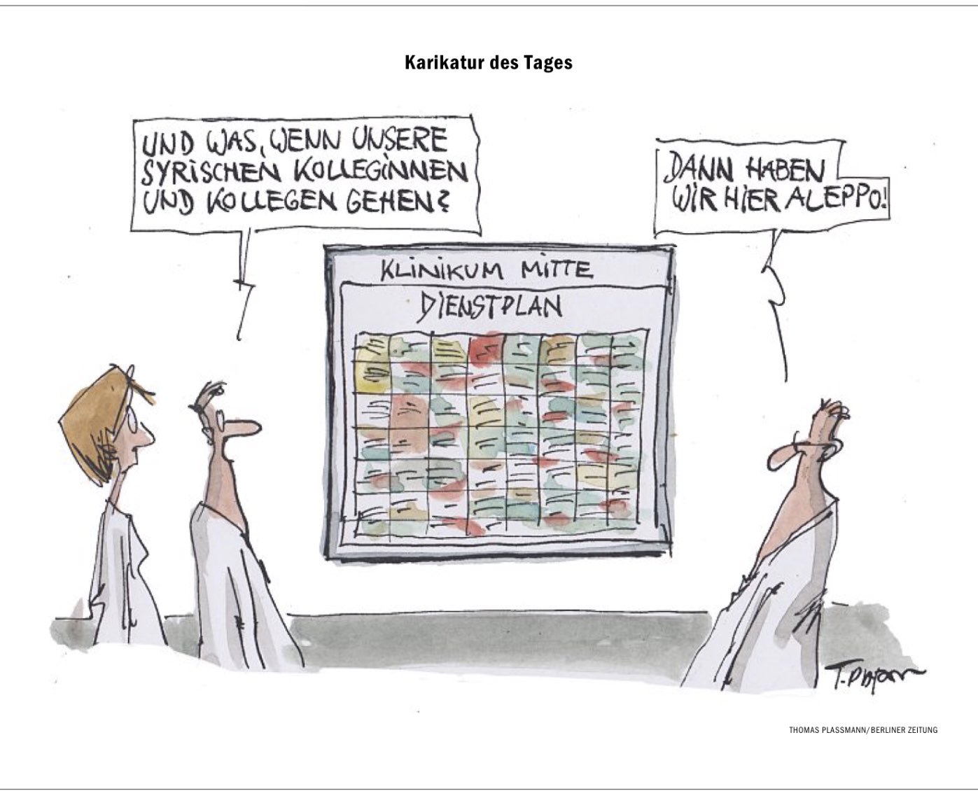 A l’hôpital : ”Et que se passe-t’il si nos collègue syriens partent ?” “Et bien, ça sera ici comme à Aleppo”