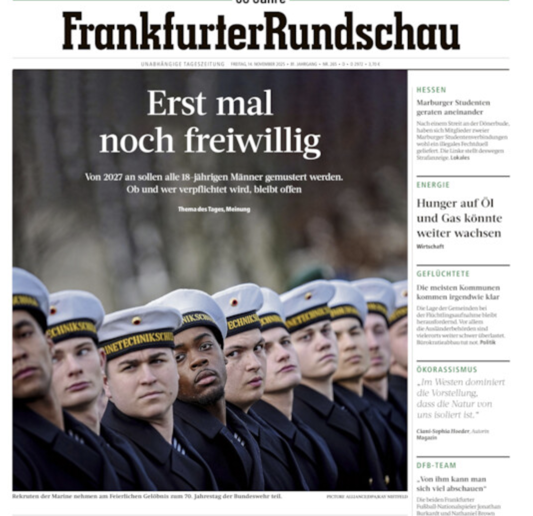 L’objectif serait que 20 000 d’entre eux effectuent volontairement un service militaire, alors que le chancelier Friedrich Merz a pour ambition de bâtir l'armée conventionnelle la plus puissante d'Europe, pour contrer la menace russe et compenser le désengagement américain. La Bundeswehr leur fait miroiter une solde de 2 600 euros bruts par mois. Si ces objectifs n’étaient pas atteints, le Parlement devrait trouver une solution cette fois plus contraignante. D’après un sondage, 84% des Allemands rejettent le principe d’un tirage au sort.