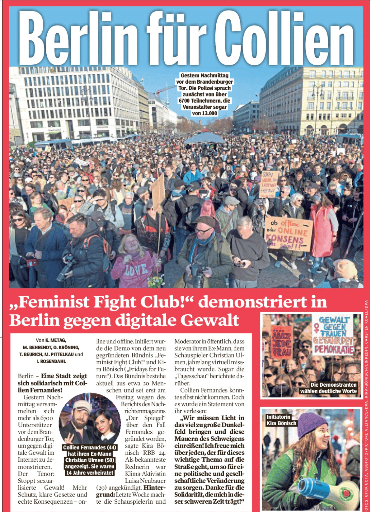 ”Berlin pour Collien” : une manifestation du “Feminist Fight Club” a réuni dimanche 13 000 personnes d’après les organisatrices. 500 avaient été annoncées