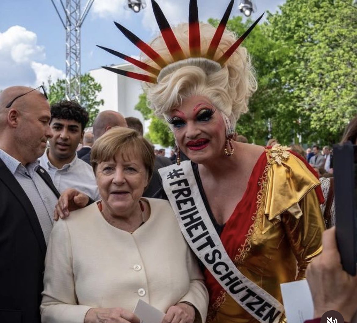 La célèbre drag queen Olivia Jones était invitée à la cérémonie marquant la semaine dernière le 75ème anniversaire de la loi fondamentale allemande. L’occasion d’un cliché inattendu avec l’ancienne chancelière.