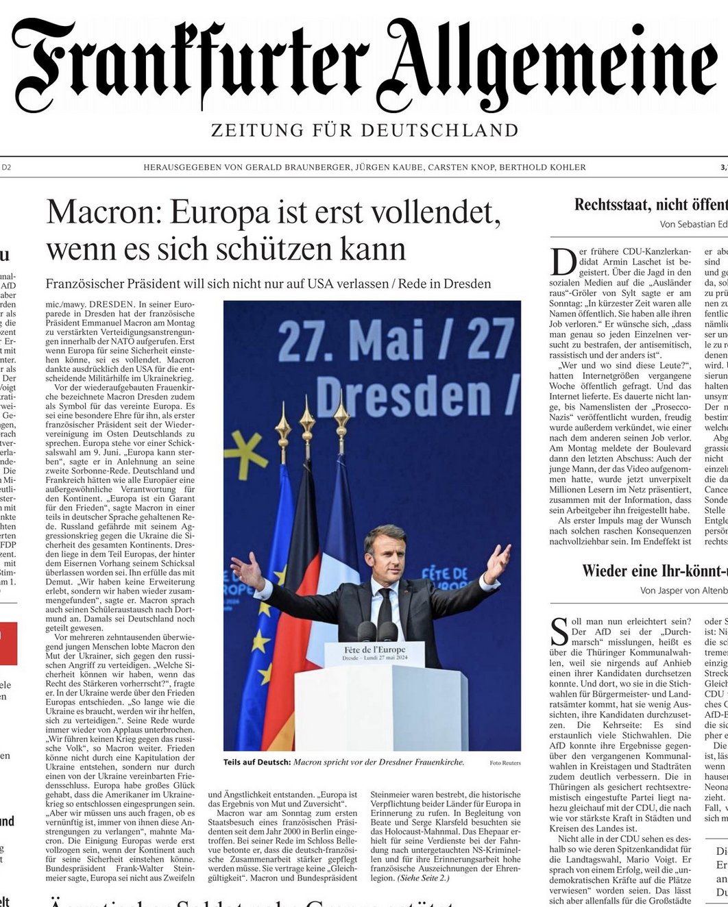 et un extrait de Macron en allemand à Dresde: https://x.com/phoenix_de/status/1795142627727196232