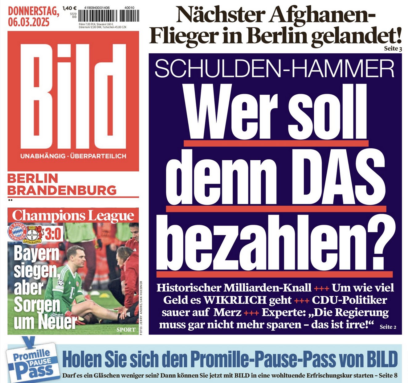 ”Qui va payer tout ça ?” se demandait la semaine dernière le quotidien après avoir fait clairement campagne pour la CDU