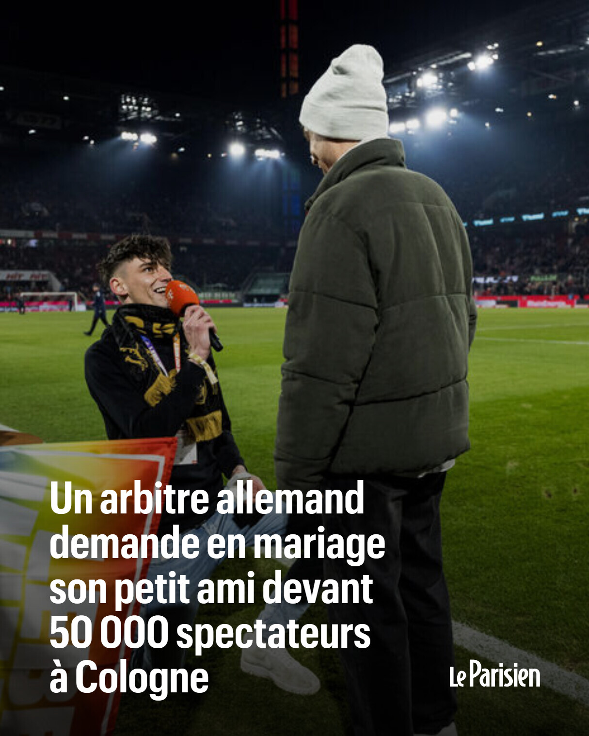 L’arbitre amateur allemand Pascal Kaiser, qui sensibilise à la lutte contre l’homophobie sur les réseaux sociaux, a demandé en mariage son petit ami Moritz devant les 50 000 spectateurs présents dans le stade de Cologne, vendredi soir. Malgré sa popularité sur les réseaux, il a confié avoir appréhendé la réaction du public alors que les problèmes liés à l’homophobie sont légion dans le monde du football. « Tout était là en même temps : la peur, la fierté, un pur bonheur, a-t-il décrit. J’avais vraiment peur d’être hué, ce qui aurait gâché toute la demande. C’est incroyable que le FC Cologne m’ait offert cette tribune et que j’ai ainsi pu envoyer un signal fort pour la visibilité des personnes queer dans le football. Se tenir devant plus de 50 000 personnes qui vous écoutent, c’est surréaliste. J’avais très peur qu’il (son petit ami) dise non. »