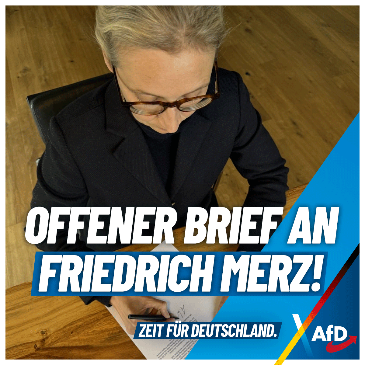 Lettre ouverte de la présidente de l’AfD Alice Weidel à Friedrich Merz proposant un vote commun