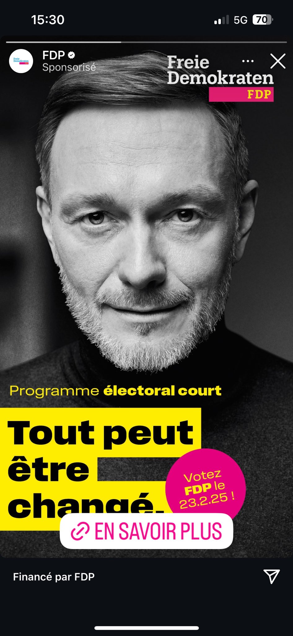 Le parti libéral joue sa survie parlementaire. Après son départ de la coalition avec les sociaux-démocrates et les verts, le FDP stagne toujours dans les sondages et risque bien le 23 février de ne pas franchir la barre des 5% nécessaire pour être représenté au Bundestag. Sur les réseaux sociaux, le parti informe aussi dans différentes langues les électeurs potentiels. Cela suffira-t’il à changer la donne ?