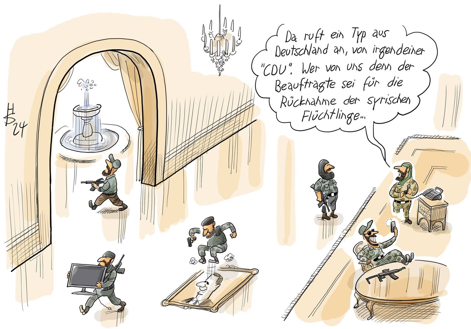 A A Damas : “Il y a un type qui appelle depuis l’Allemagne. Une certaine CDU. Il demande qui chez nous s’occupe du rapatriement des réfugiés syriens”