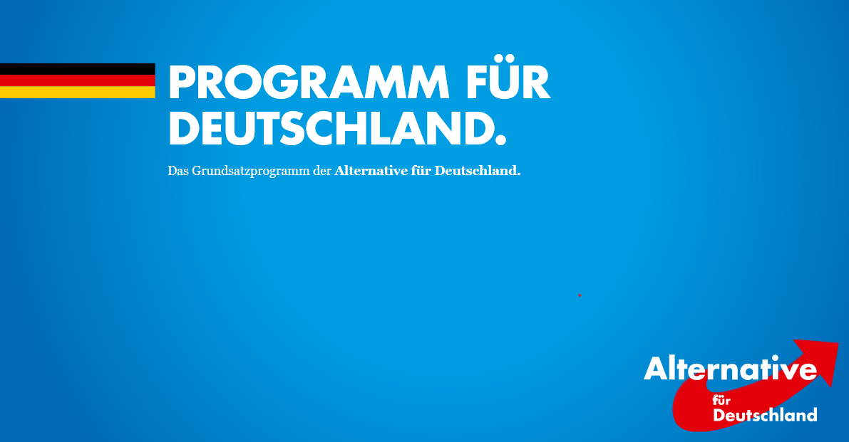 Dexit : le parti d’extrême-droite souhaite la sortie de l’Allemagne de la zone Euro et de l’Union européenne et plaide pour une “Europe des patries”. Le mouvement veut un retour du nucléaire, la fin des sanctions contre Moscou et à nouveau des livraisons de gaz russe. Le changement climatique est relativisé. L’immigration sans surprise est rejetée. Le droit à l’avortement doit être durci et les IVG doivent devenir l’exception en cas de viol ou si la vie de la mère est en danger.