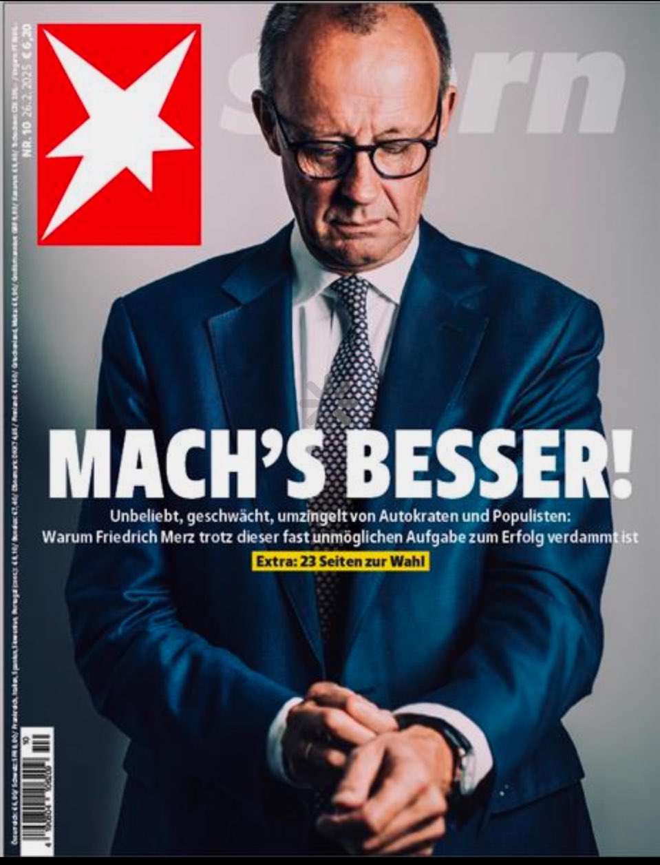 ”Fais mieux !” titre le magazine cette semaine. “Impopulaire, affaibli, entouré d’autocrates et de populistes : pourquoi Friedrich Merz est condamné au succès malgré une mission quasi impossible”