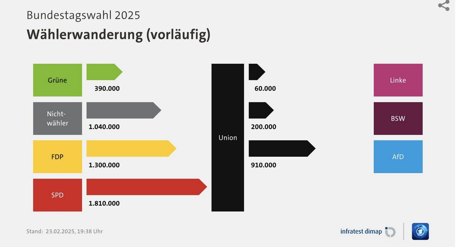 Cette stratégie n’a aucunement permis aux chrétiens-démocrates de récupérer des électeurs de l’extrême droite comme le montrent les analyses sur les transferts de voix ci-dessus. Au contraire, 900 000 personnes qui avaient voté pour CDU et CSU lors des dernières élections ont préféré cette fois l’AfD.
