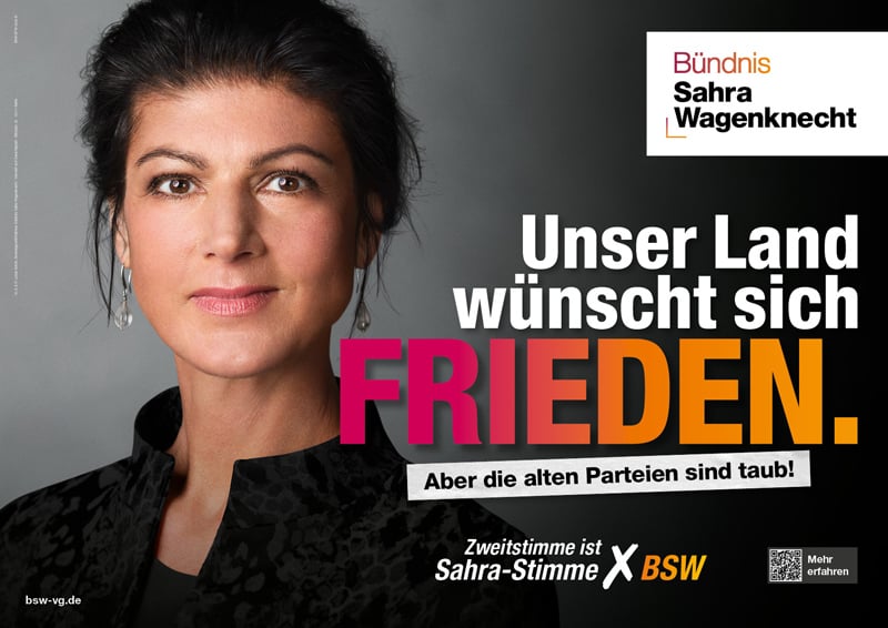 ”Notre pays veut la paix. Mais les anciens partis sont sourds” affiche de campagne de BSW
