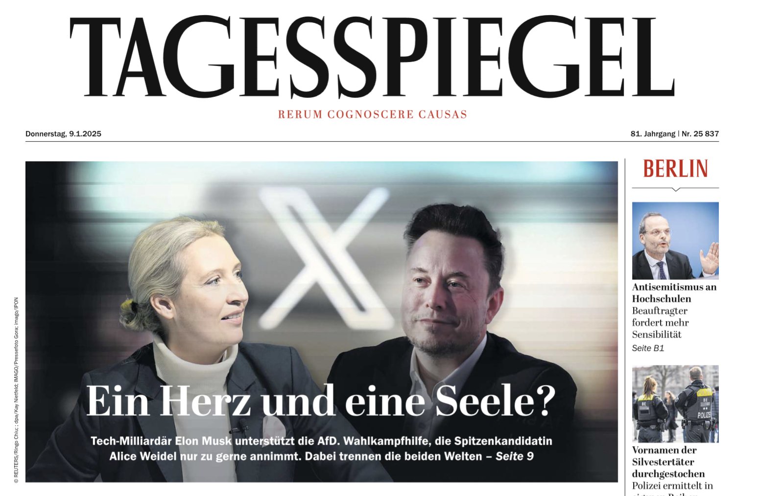 Un entretien assez ennuyeux, décousu et visiblement non préparé, marqué de nombreuses contre-vérités. Visiblement, même certains à l’AfD, n’ont pas été enthousiasmés par la prestation d’Alice Weidel et cela ne tenait pas seulement à son anglais. La tête de lice du mouvement d’extrême-droite à qui Musk demandait de présenter son programme n’a pas été capable de le faire de manière claire. Visiblement très flattée de dialoguer avec le milliardaire américain, elle a régulièrement gloussé comme une jeune adolescente pubertaire.