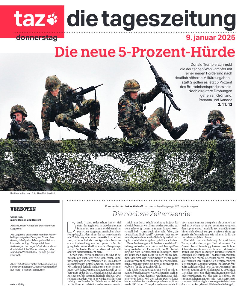 ”La nouvelle barre des 5%” a ironisé le quotidien de gauche en référence à celle nécessaire pour les partis pour être représentés au Bundestag ou dans les parlements régionaux