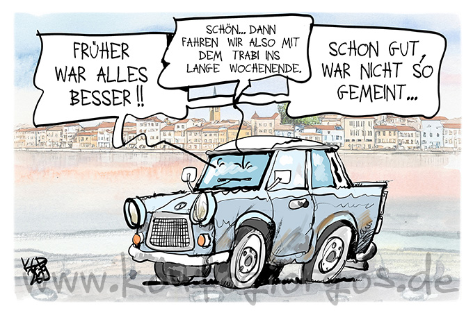 ”tout était mieux avant !” “Partons alors en week-end en Trabant” “ça n’est pas ce que je voulais dire”
